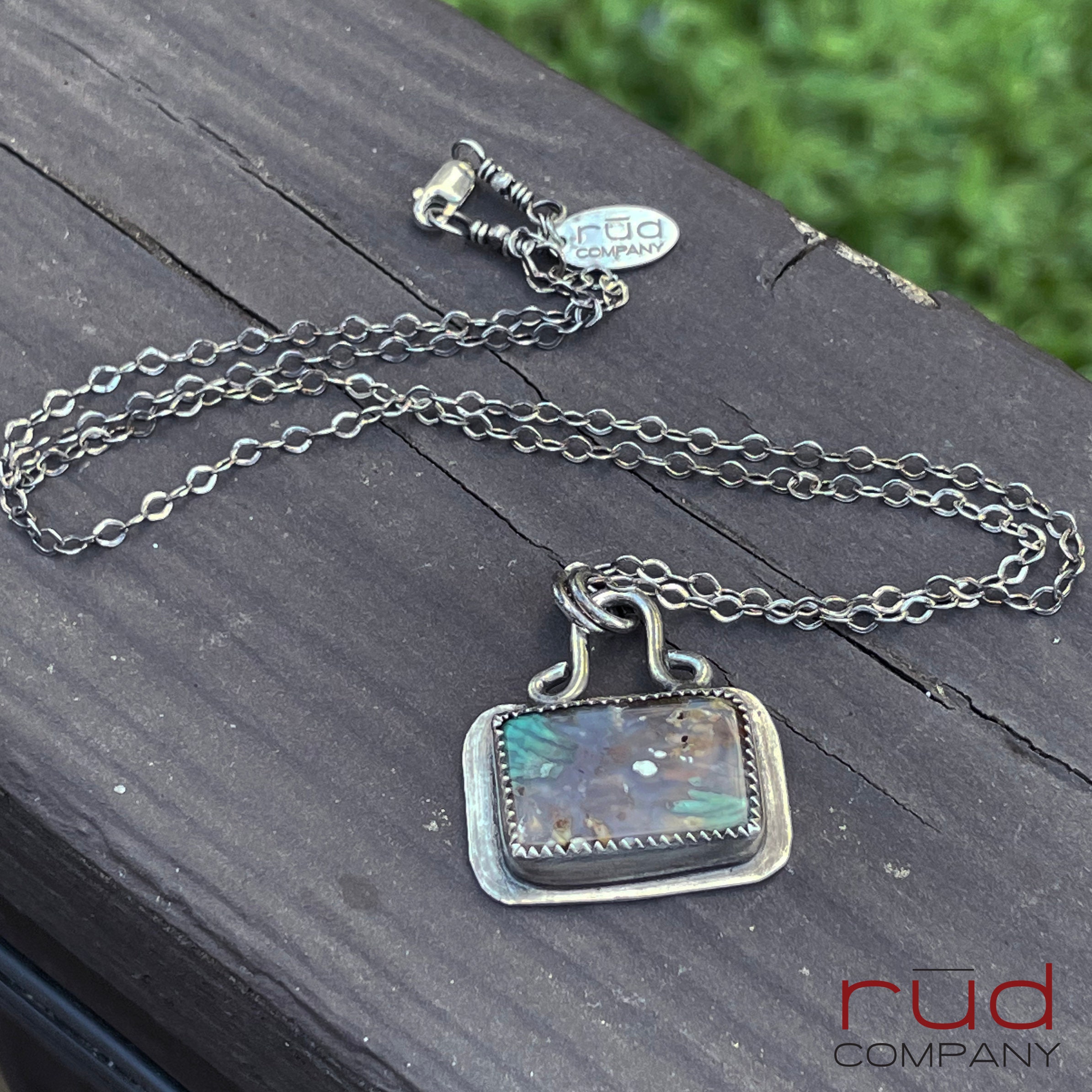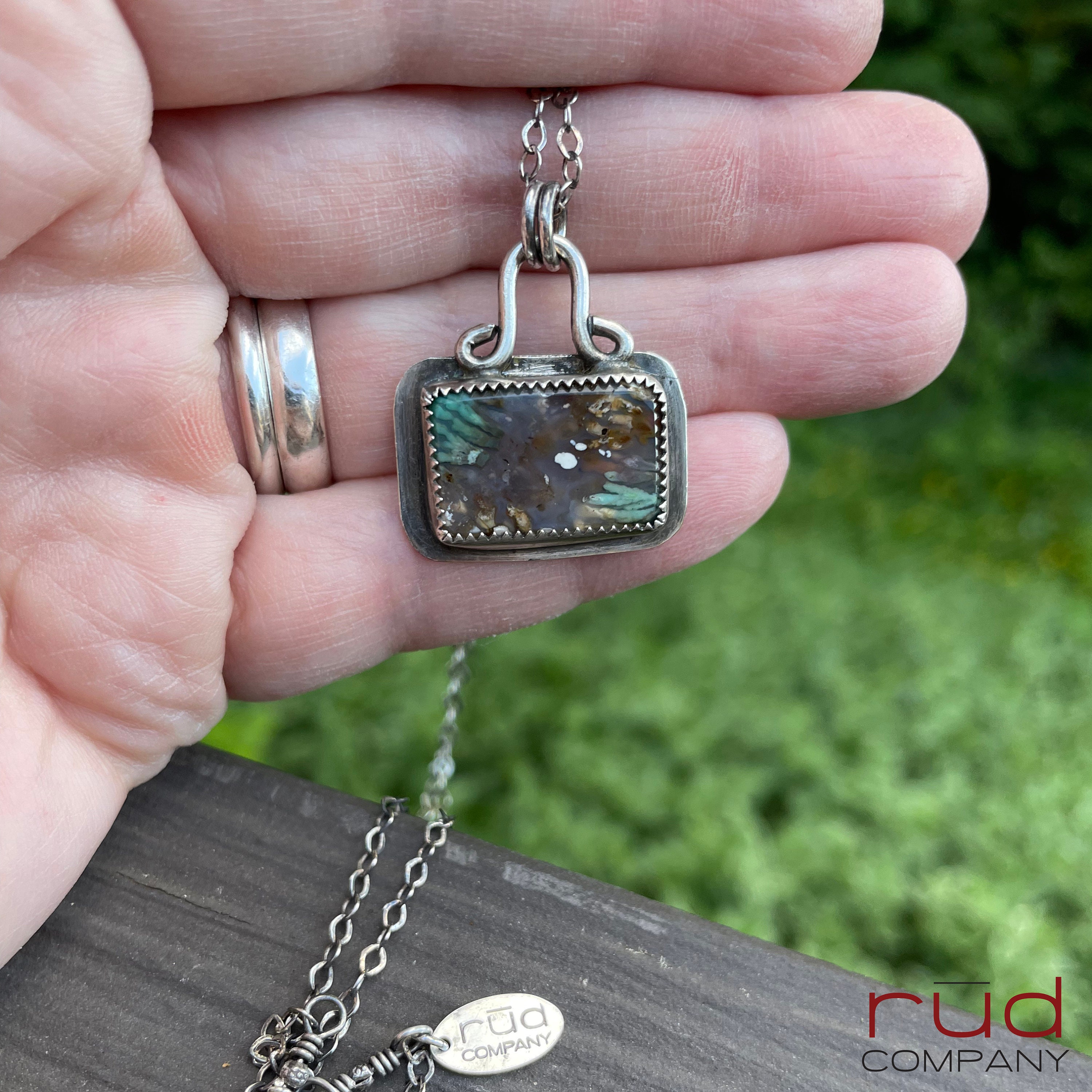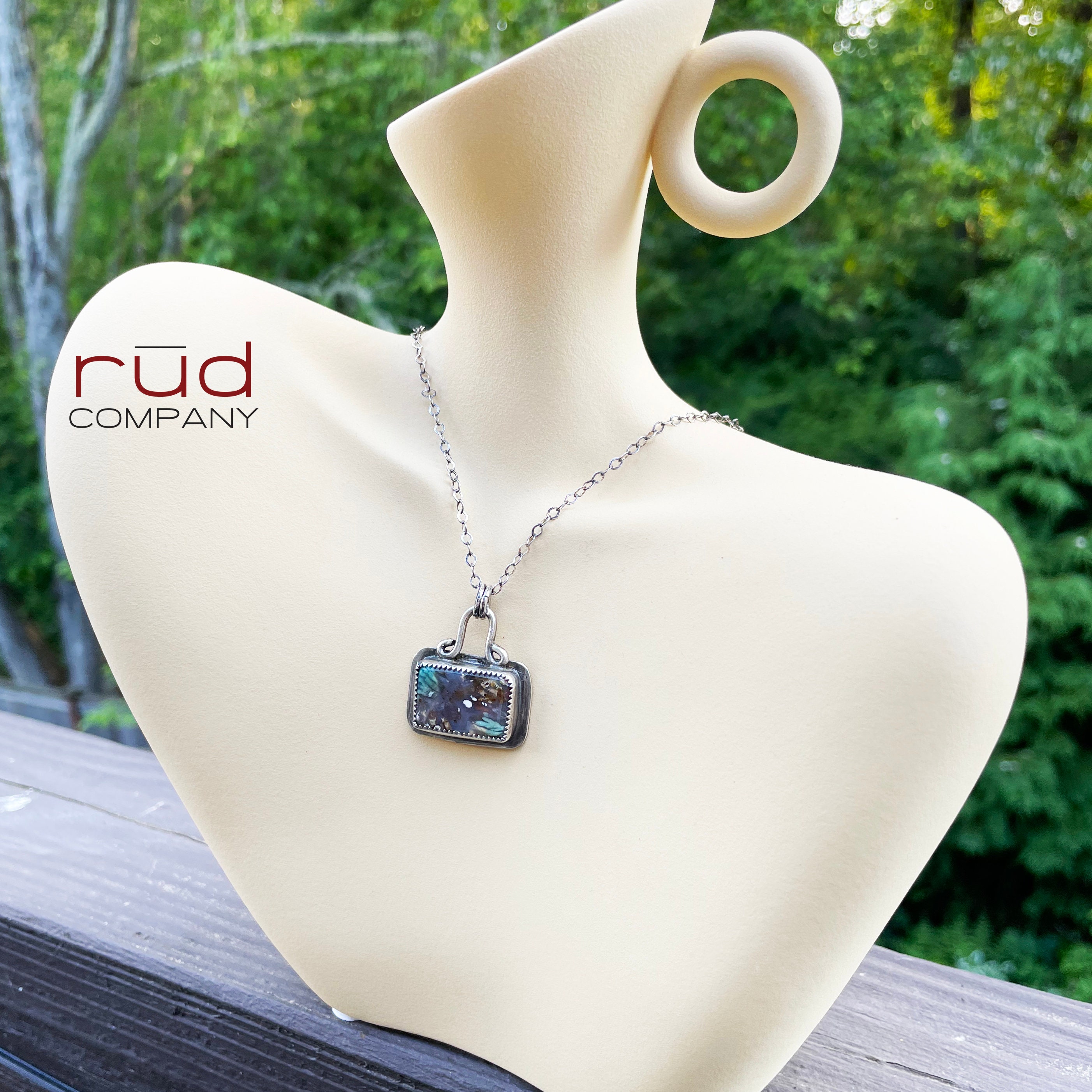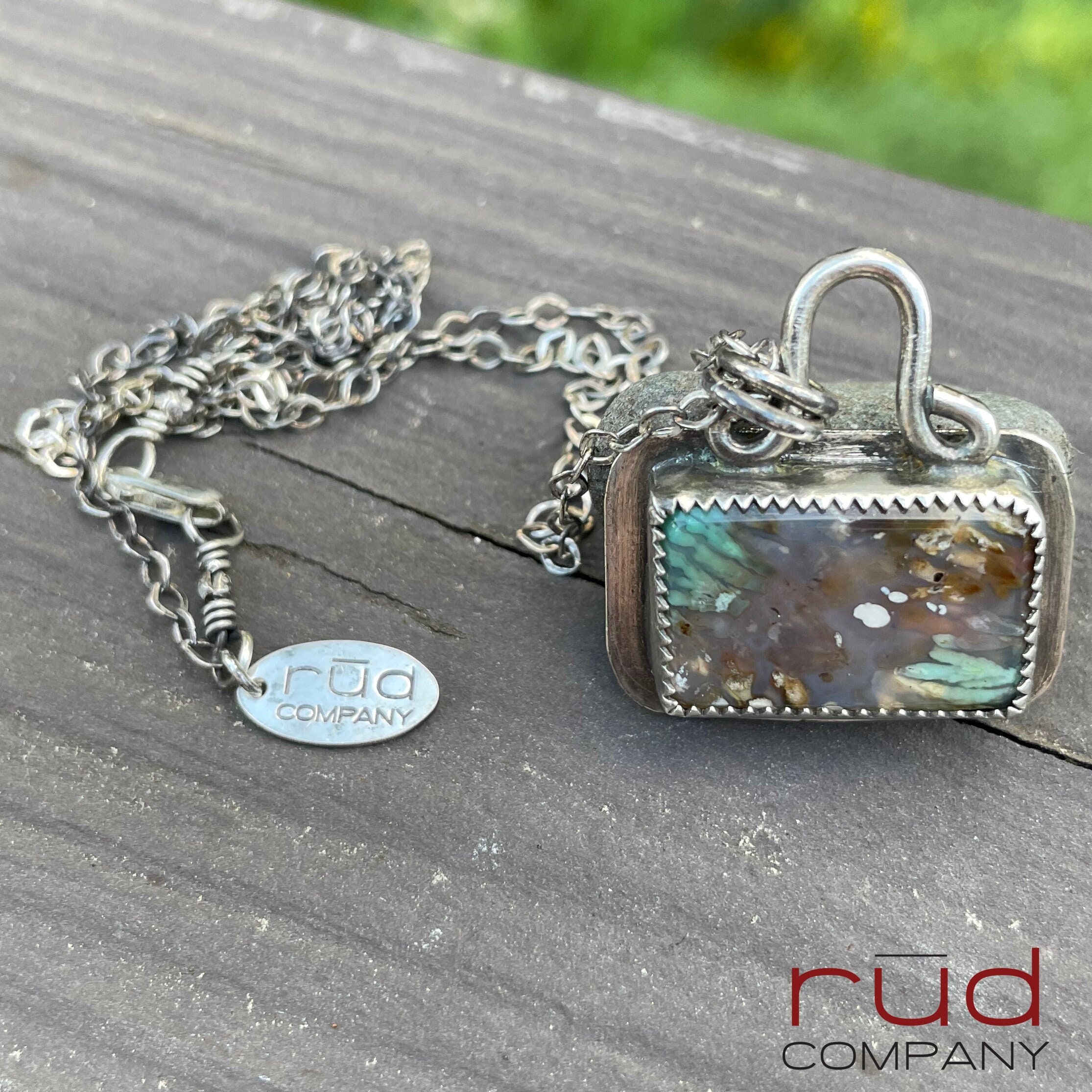 A heart tag with the Rūd logo and .925 (sterling) hallmark graces the back of the necklace. Our logo and hallmark also whimsically appear on the reverse of the pendant. This is a breathtaking necklace that will be treasured by its owner. The photos do not do the beauty of this stone justice - it is just gorgeous. Shades of earthy brown, teal, spots of aqua and cobalt - stunning.