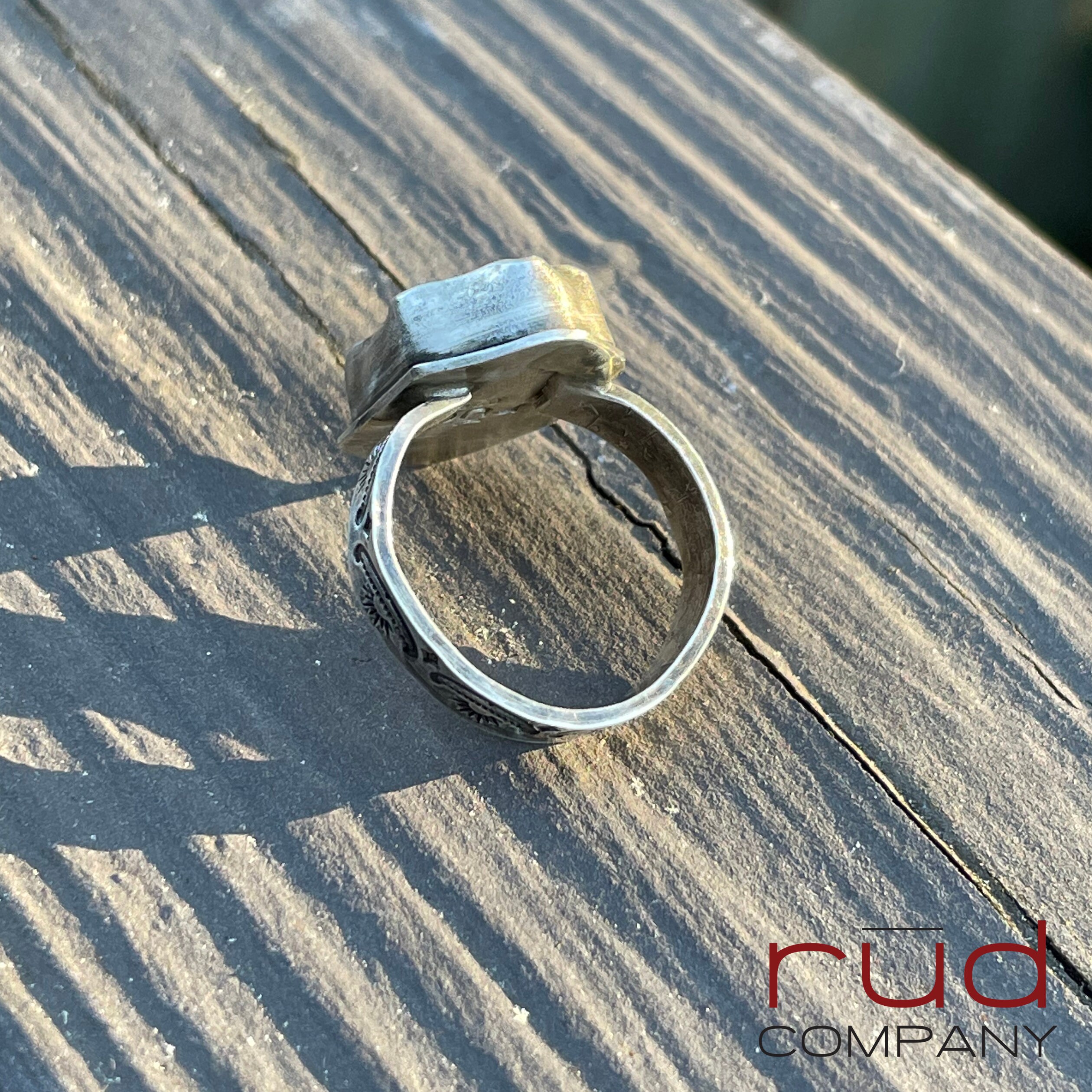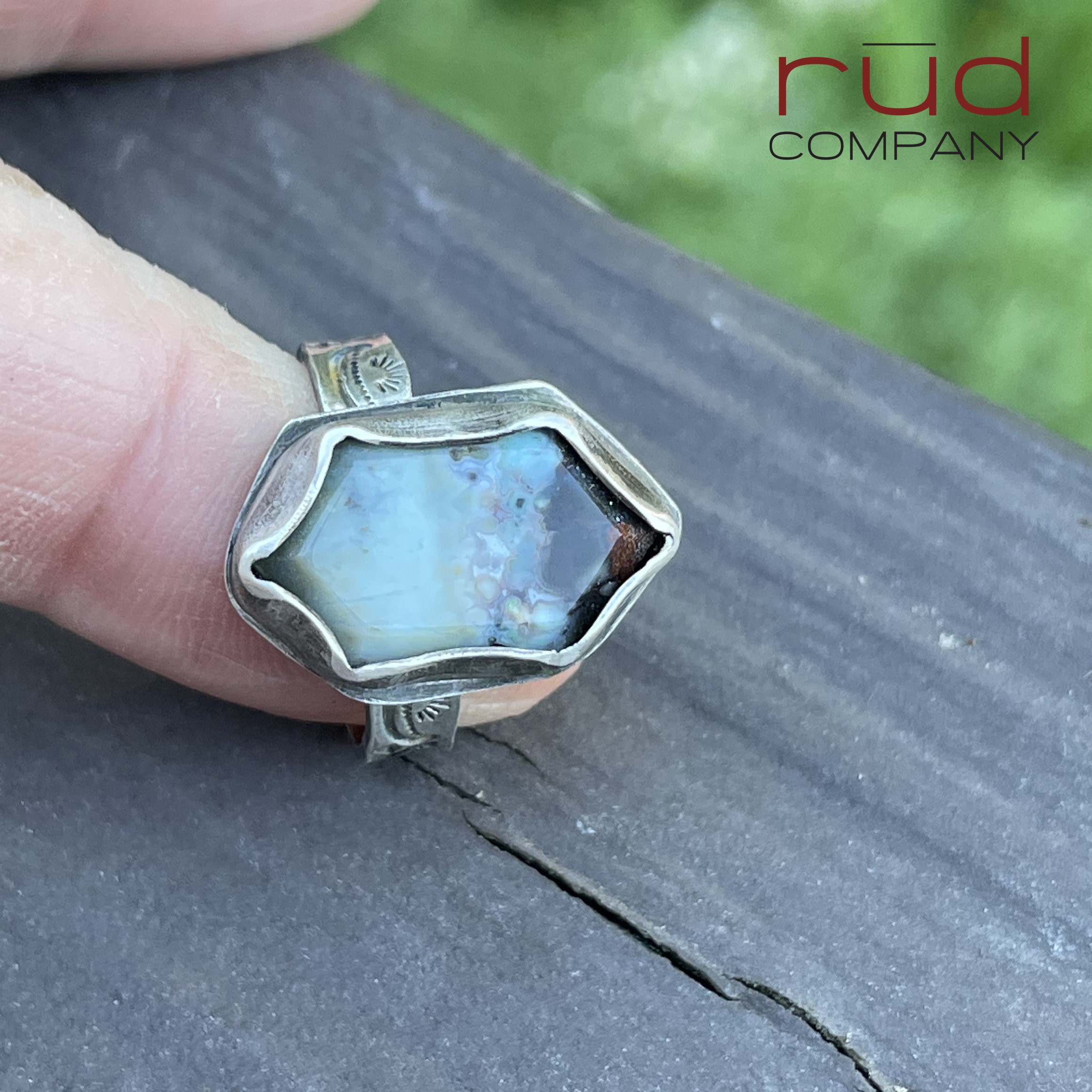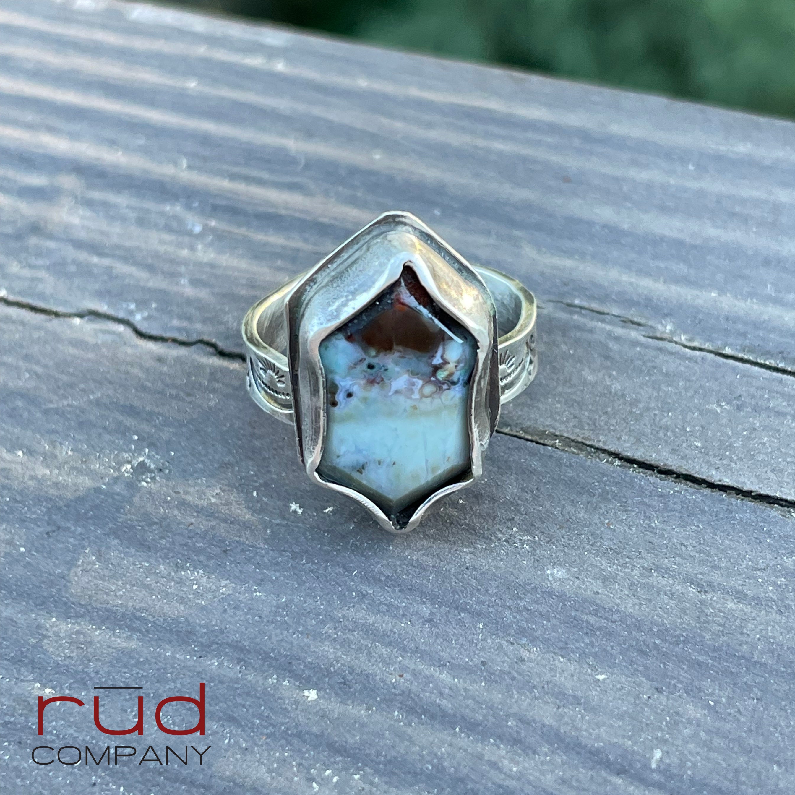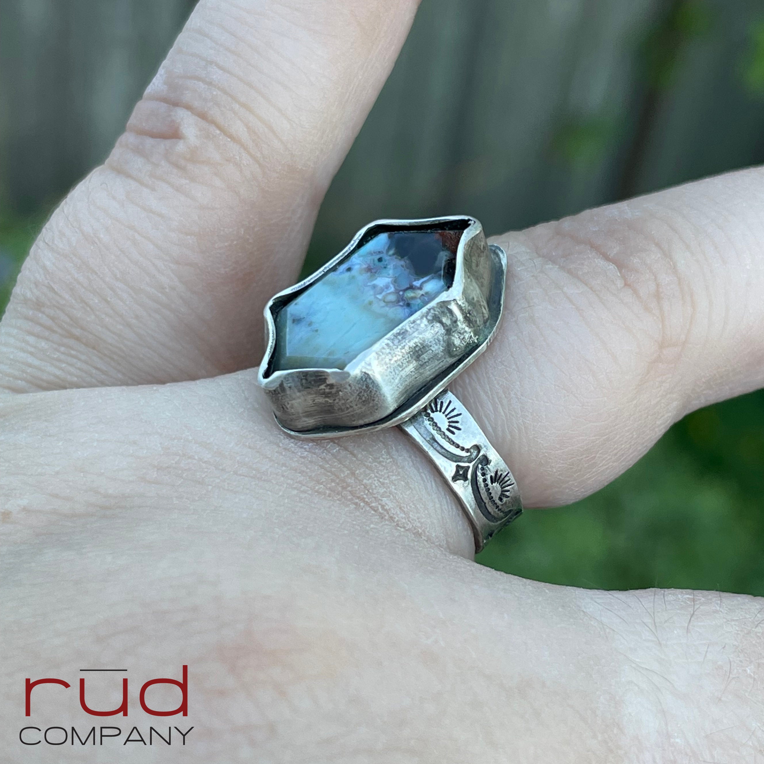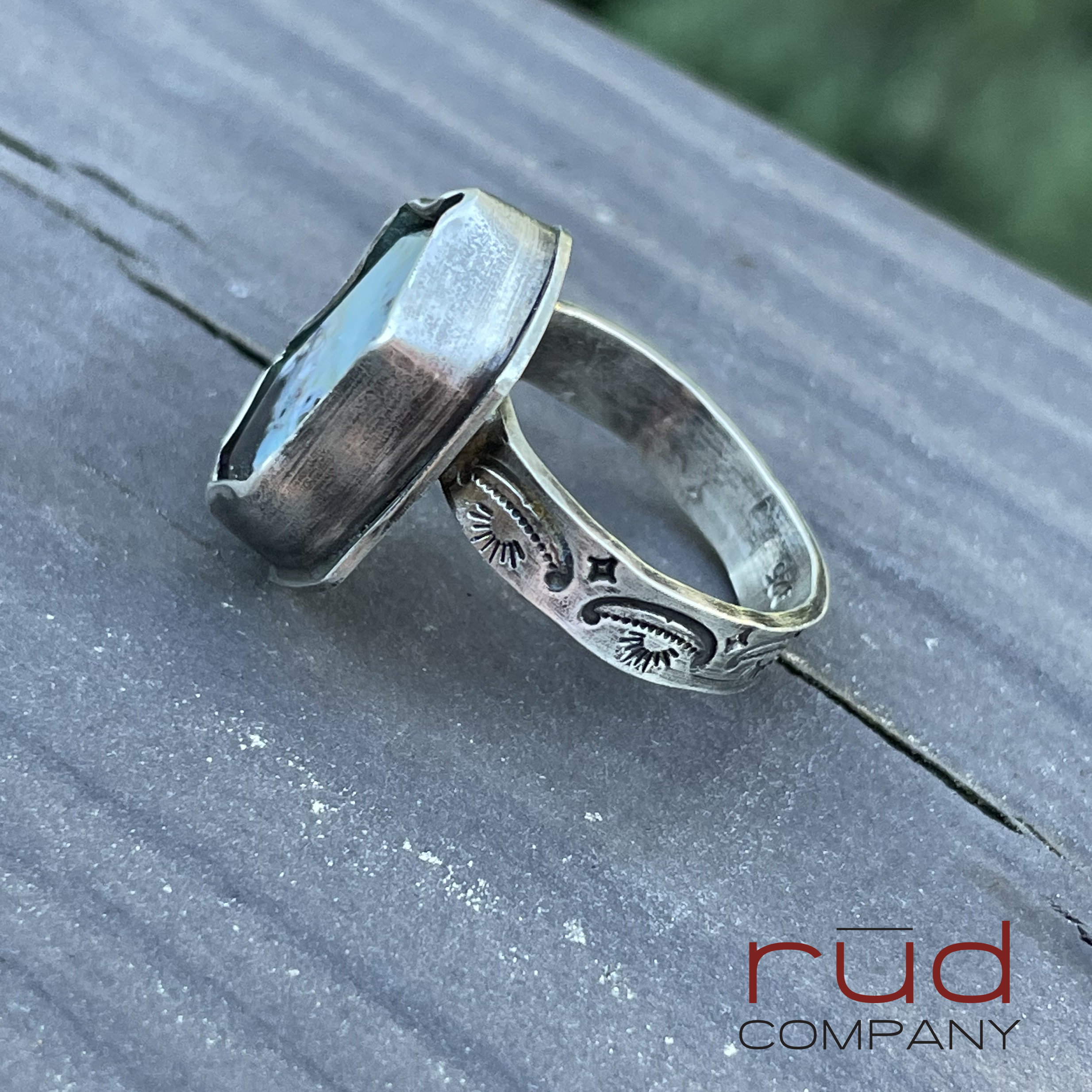 This ring will set you apart - this stone/material is very rare and only comes from a single source location in Indonesia. The stonecutter uses a bevel technique that is stunning. I've set it into a sterling silver bezel with a narrow flair to really showcase the stone.