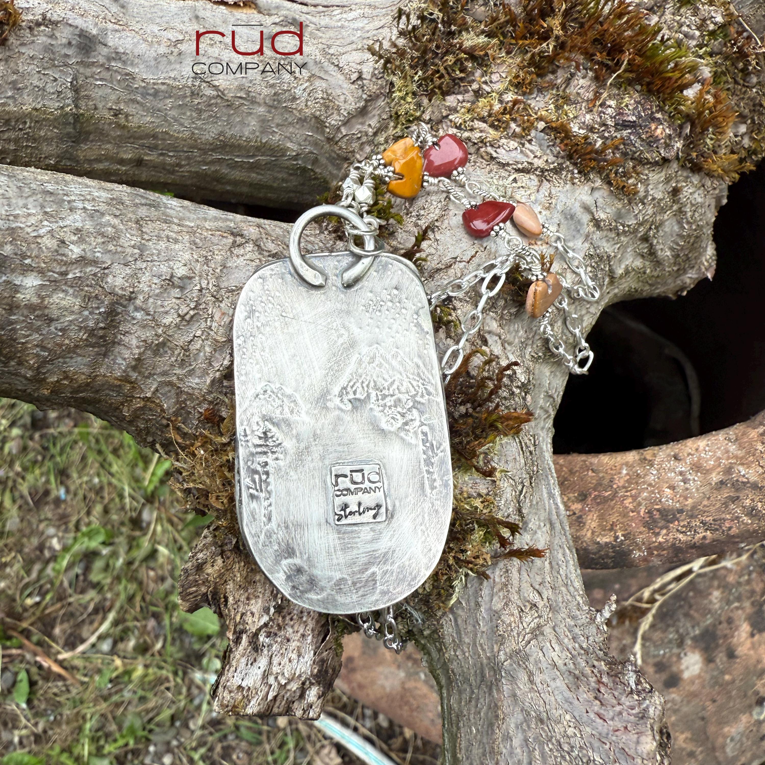 A heart tag with the Rūd logo and .925 (sterling) hallmark graces the back of the necklace. Our logo and hallmark also whimsically appear on the reverse of the pendant. This is a breathtaking necklace that will be treasured by its owner.