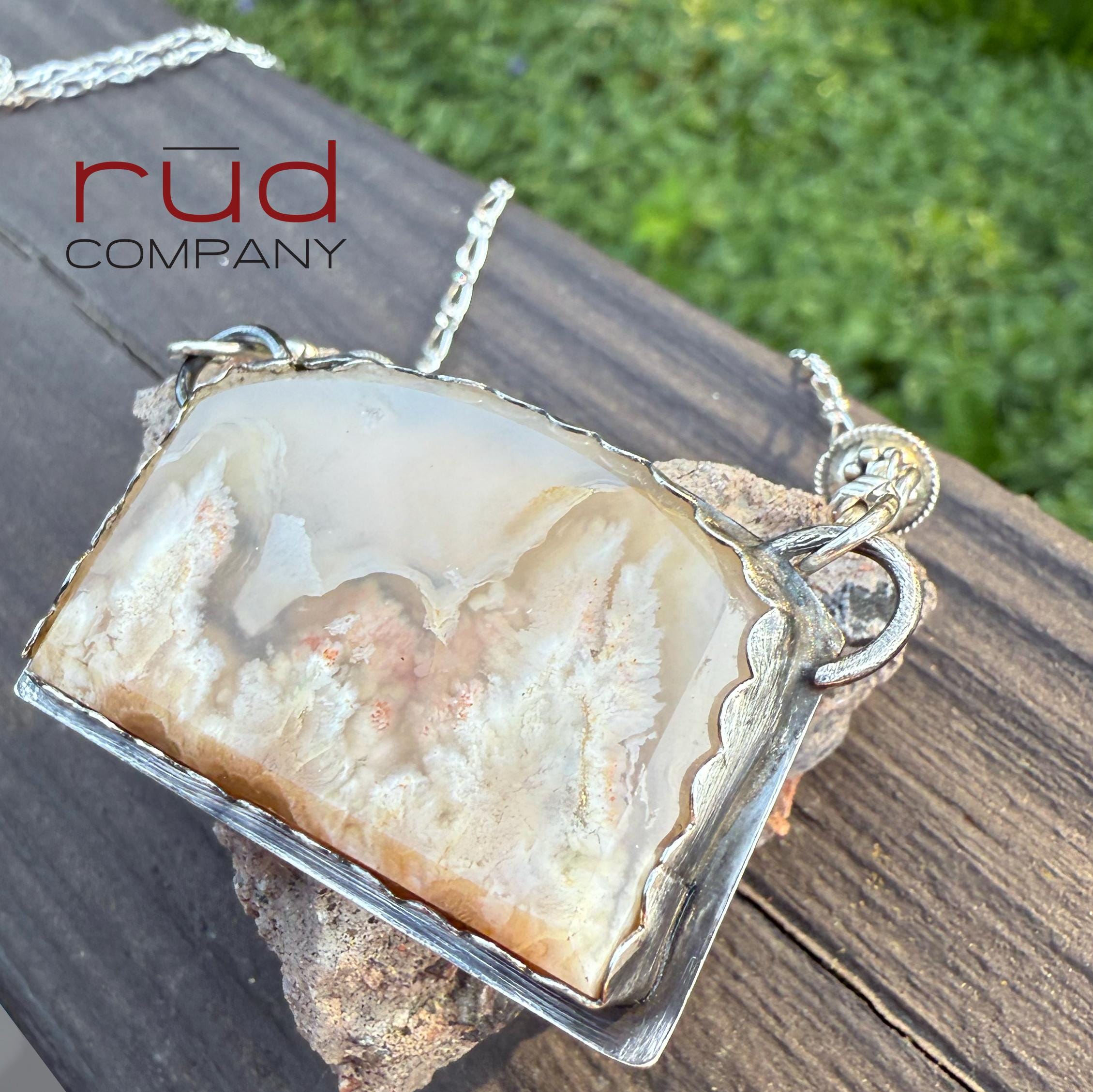 Our logo and hallmark also whimsically appear on the reverse of the pendant. This is a breathtaking necklace that will be treasured by its owner. The photos do not do the beauty of this stone justice - it is just gorgeous.
