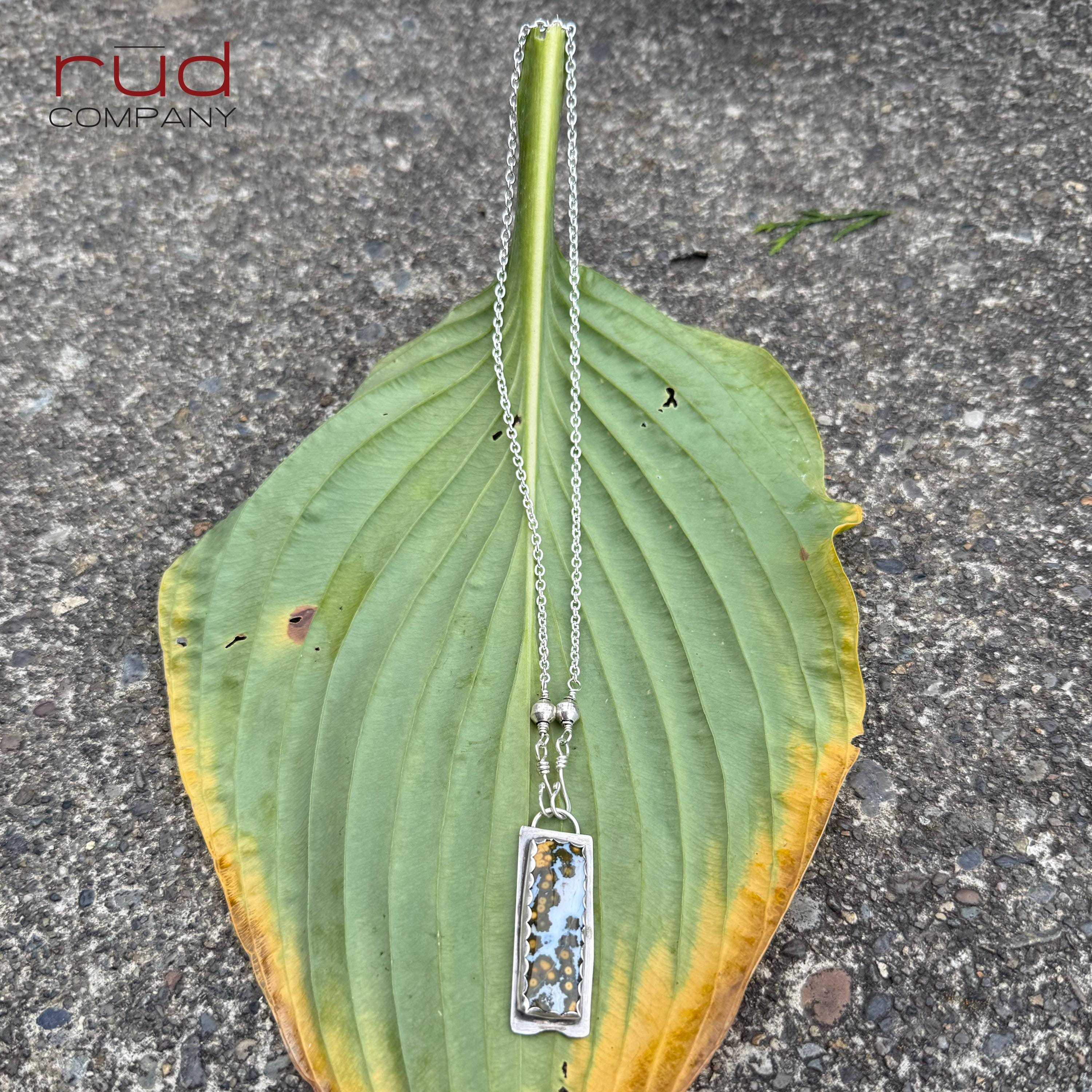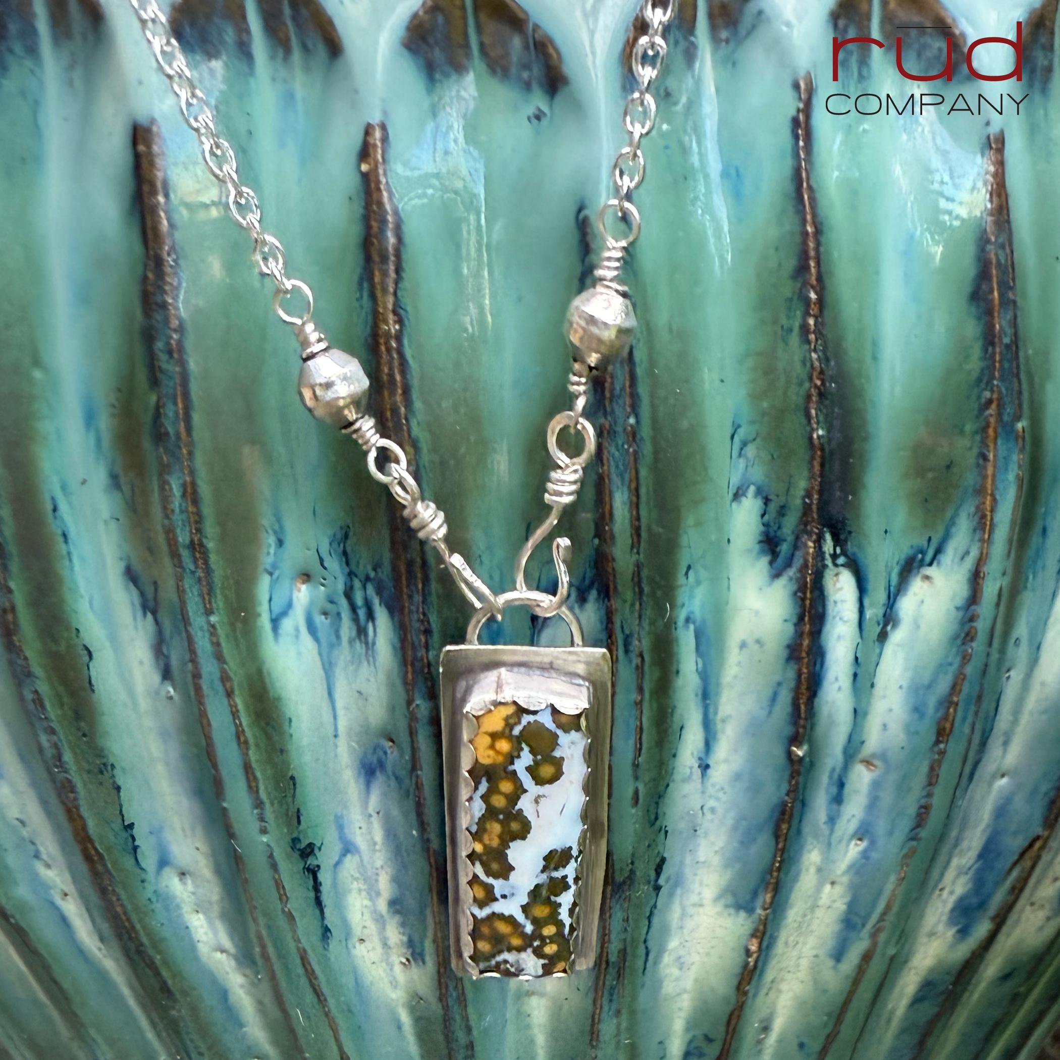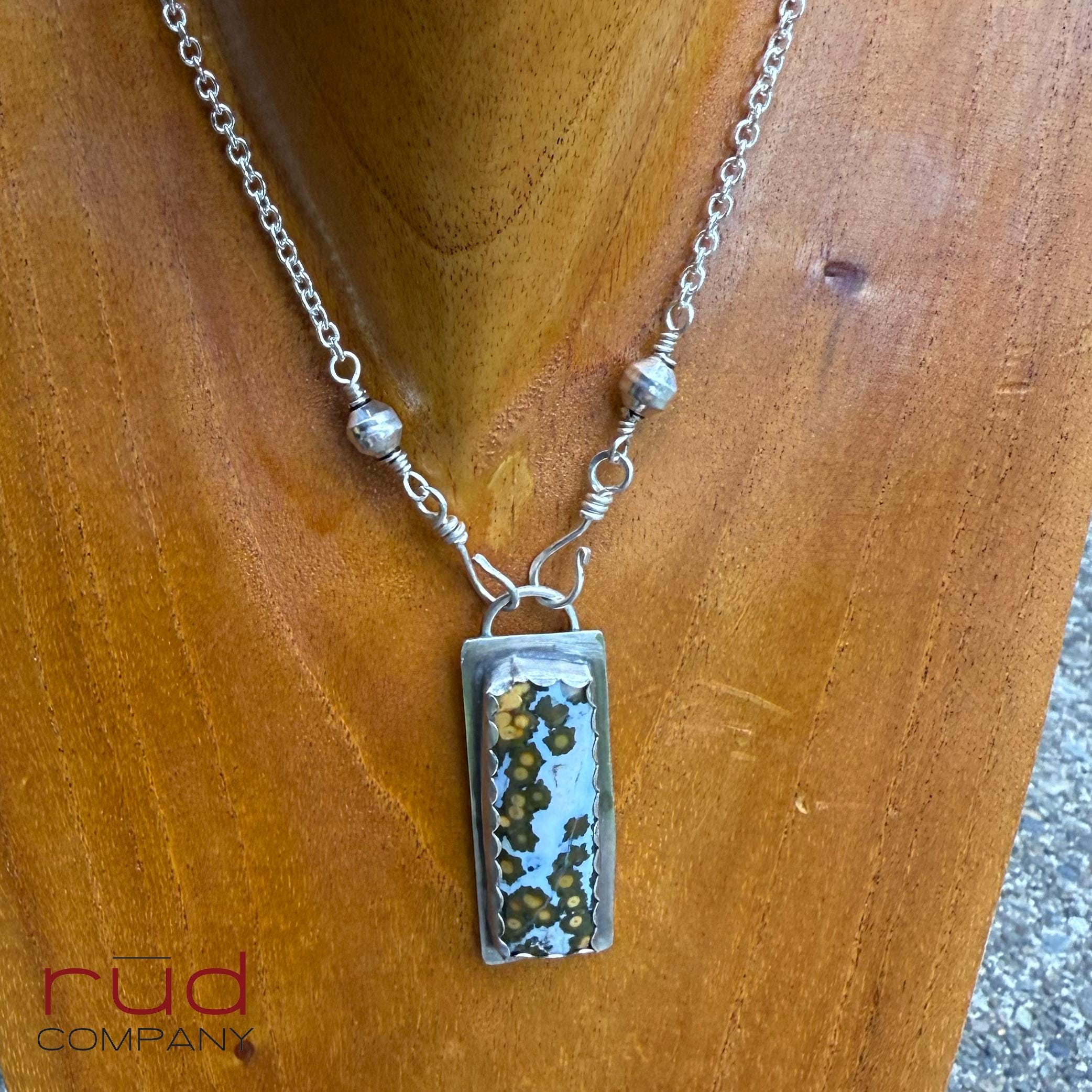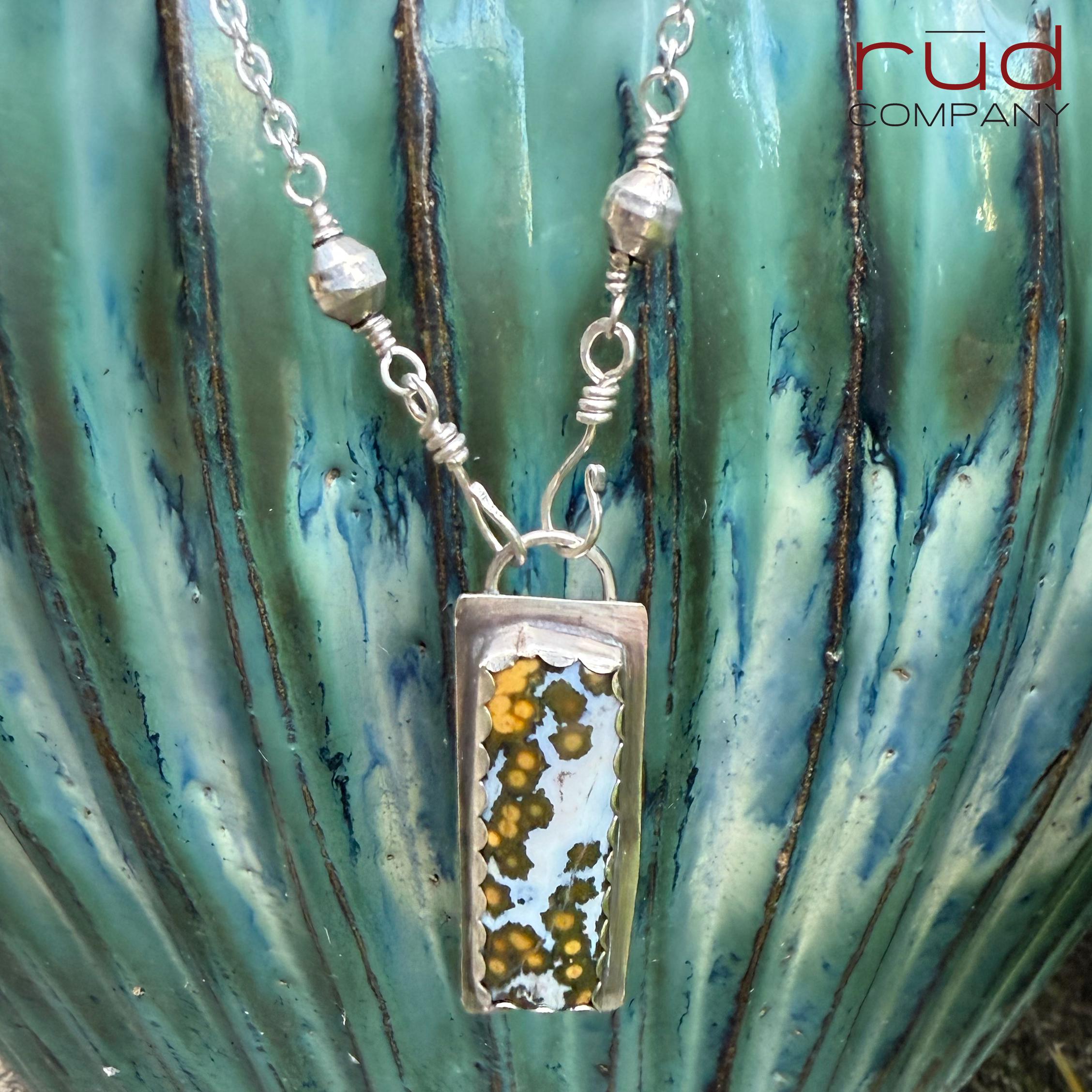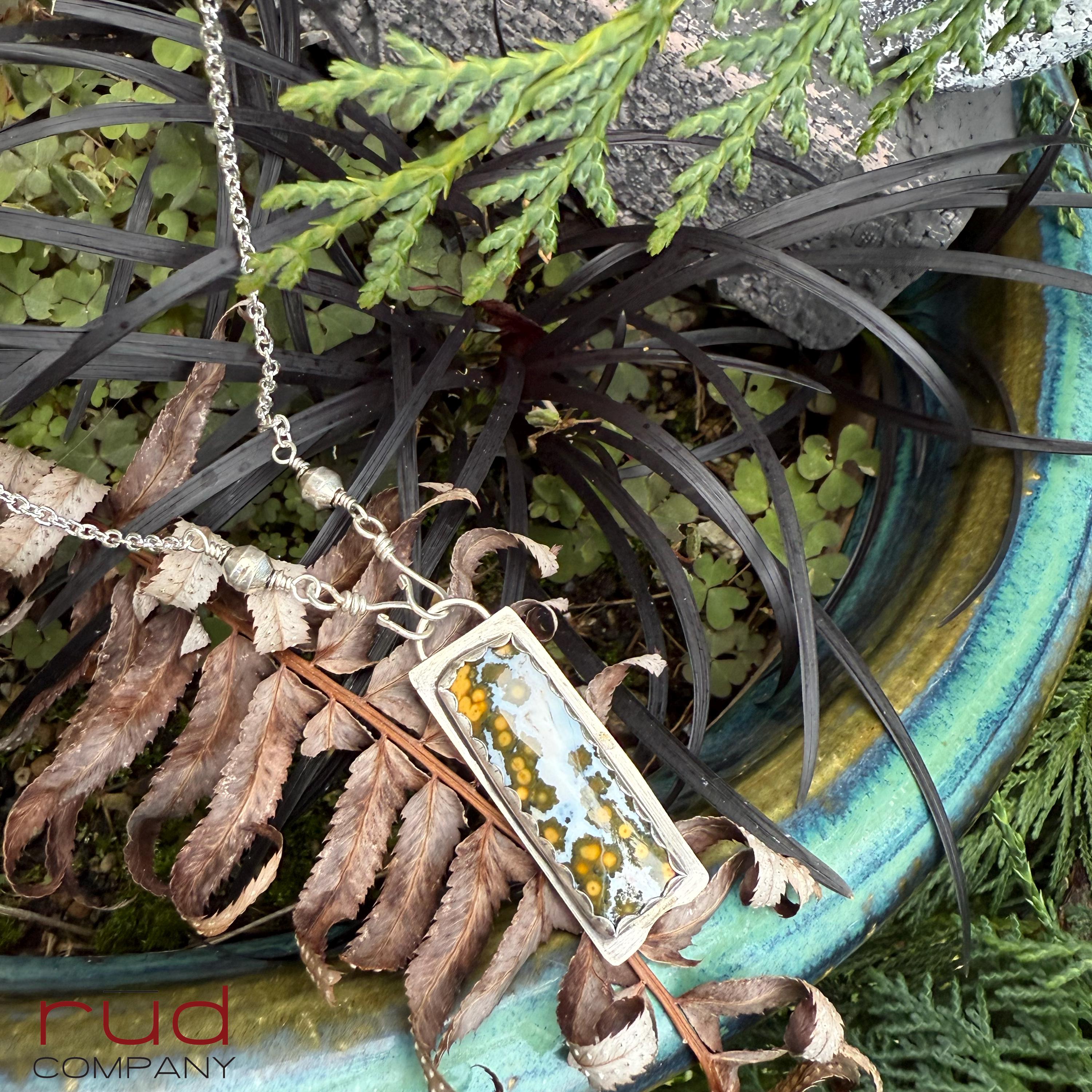Forest Wayfinder - Rare Ocean Jasper Rectangle Cabochon set in Sterling Silver Necklace, Hand-Forged, Front Hook, Pine Mountain theme
