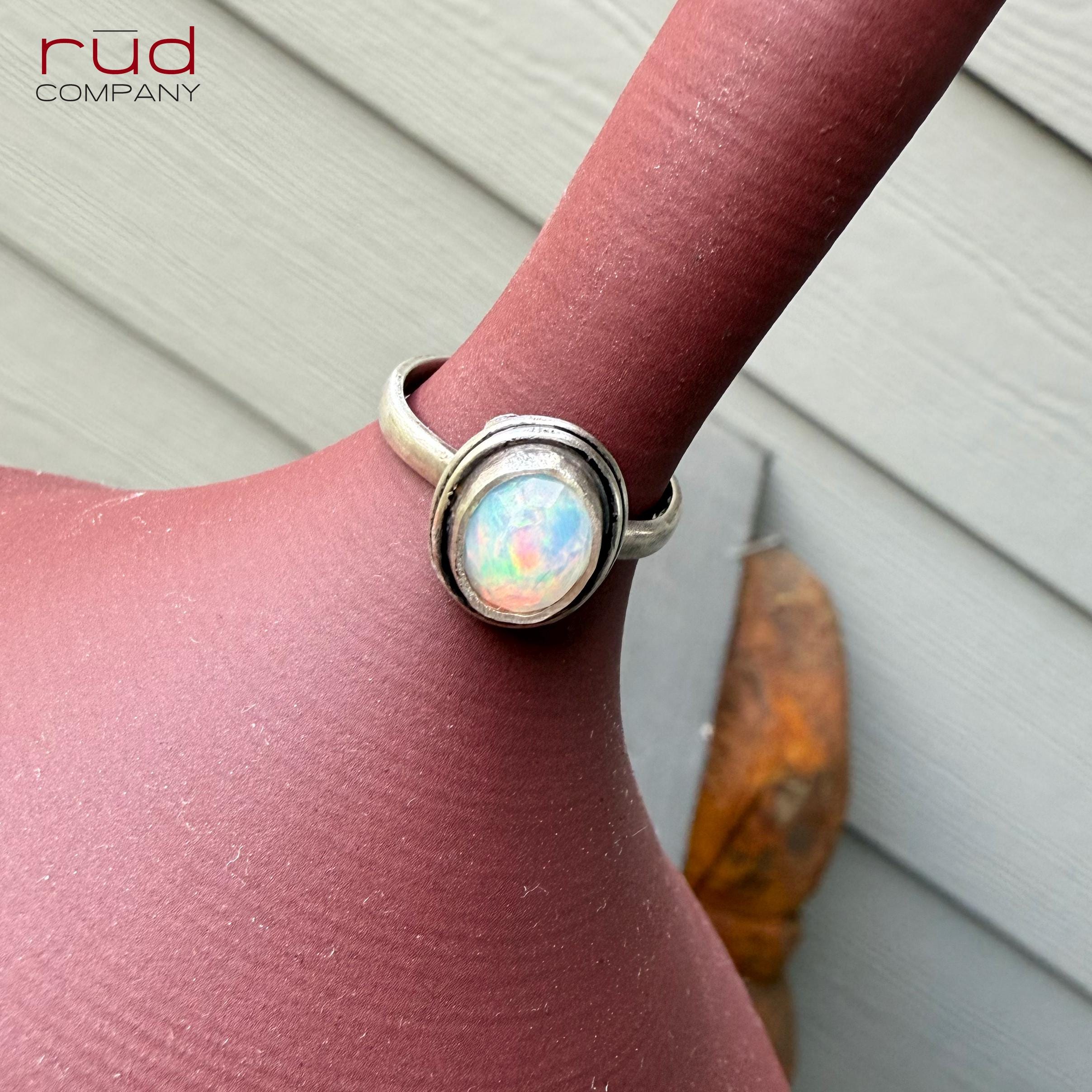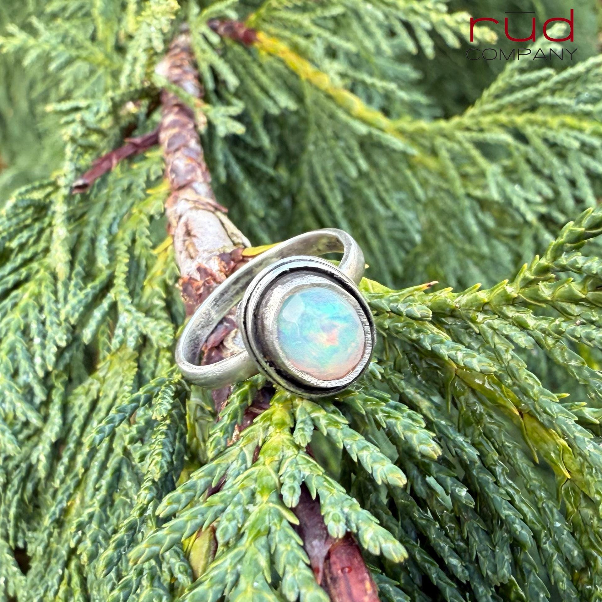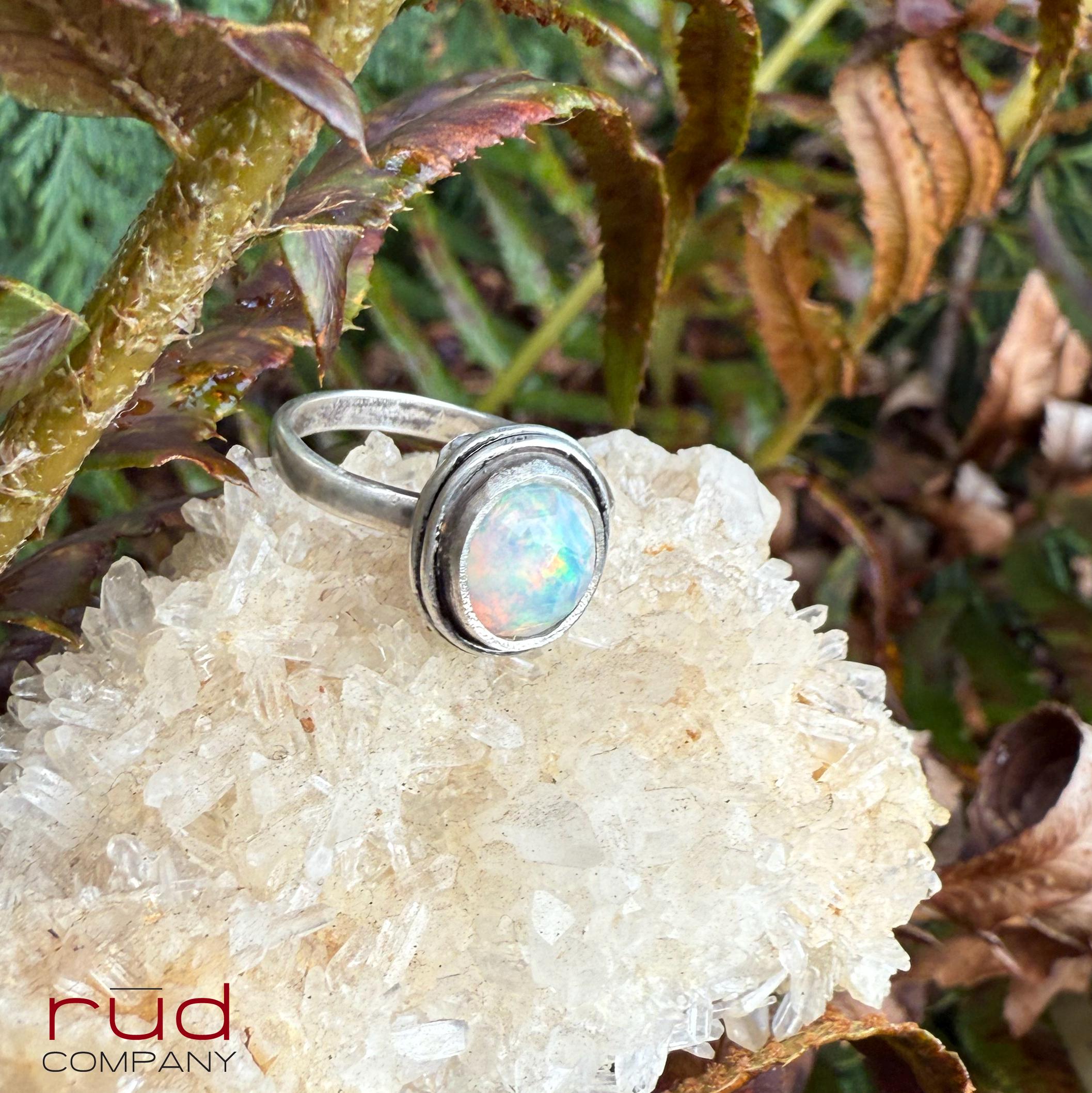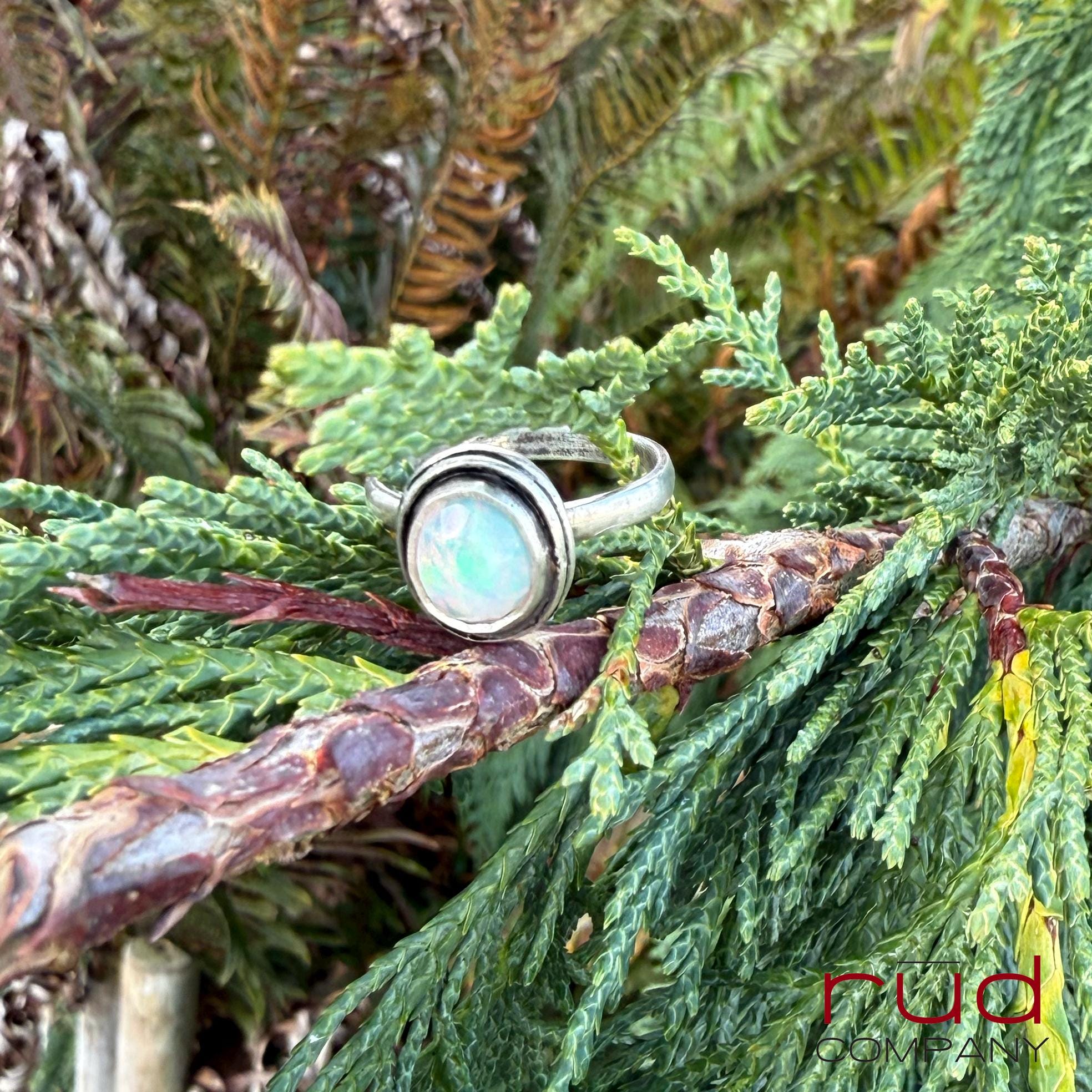 Daybreak - Stunning Ethiopian Opal Multi-Fire Ring artisan Ring set in Sterling Silver with Pinks, Blues, Greens Ring Minimalist Size 8.25