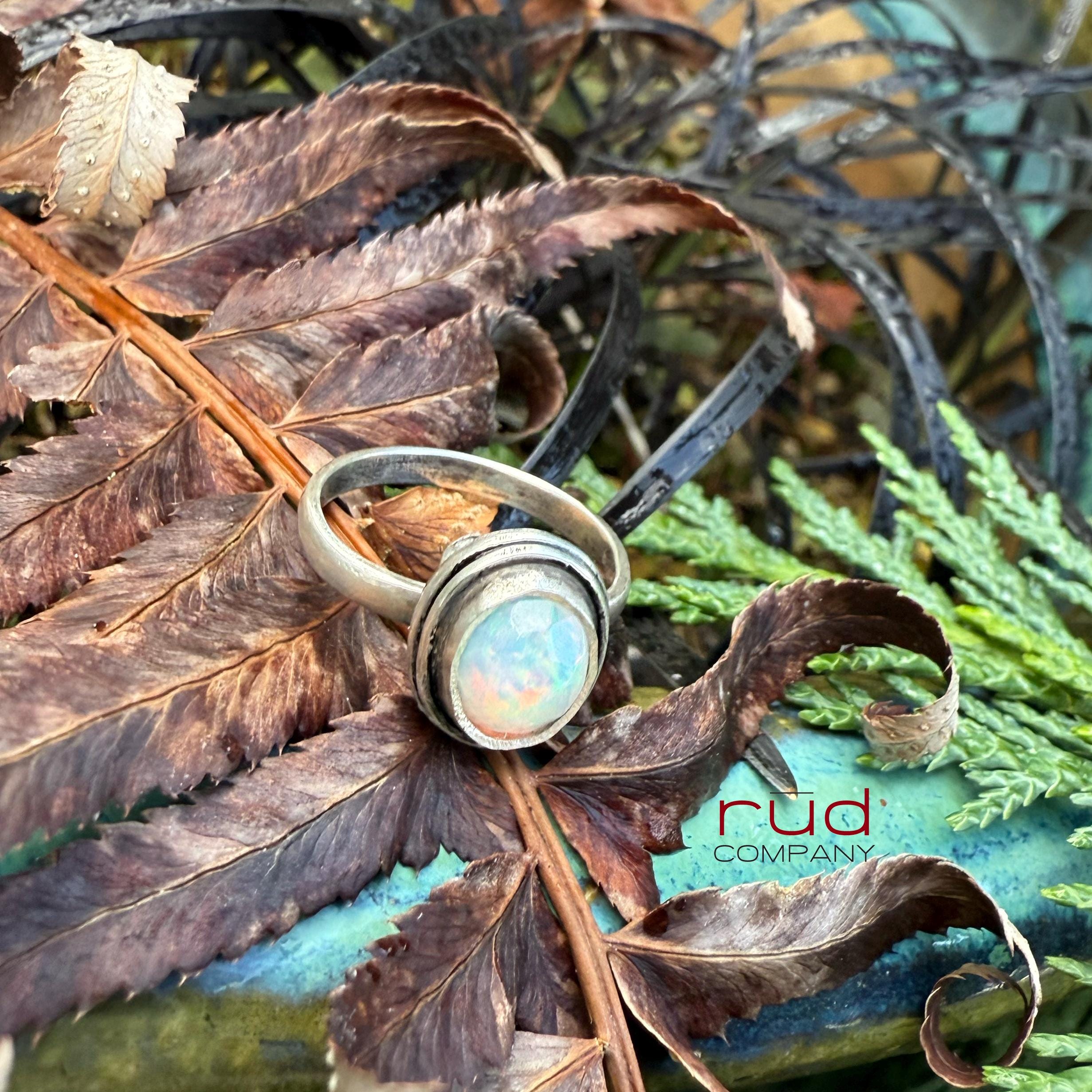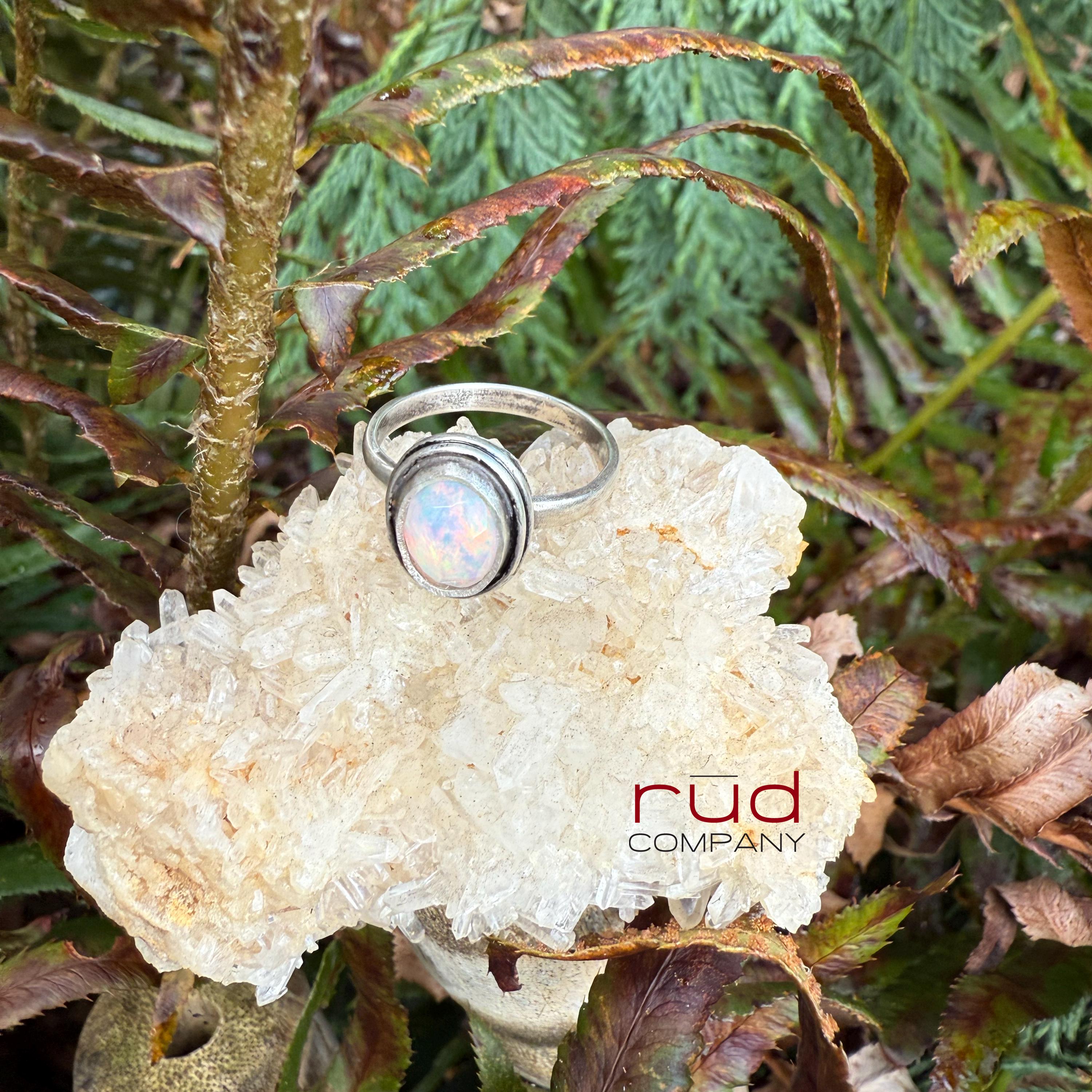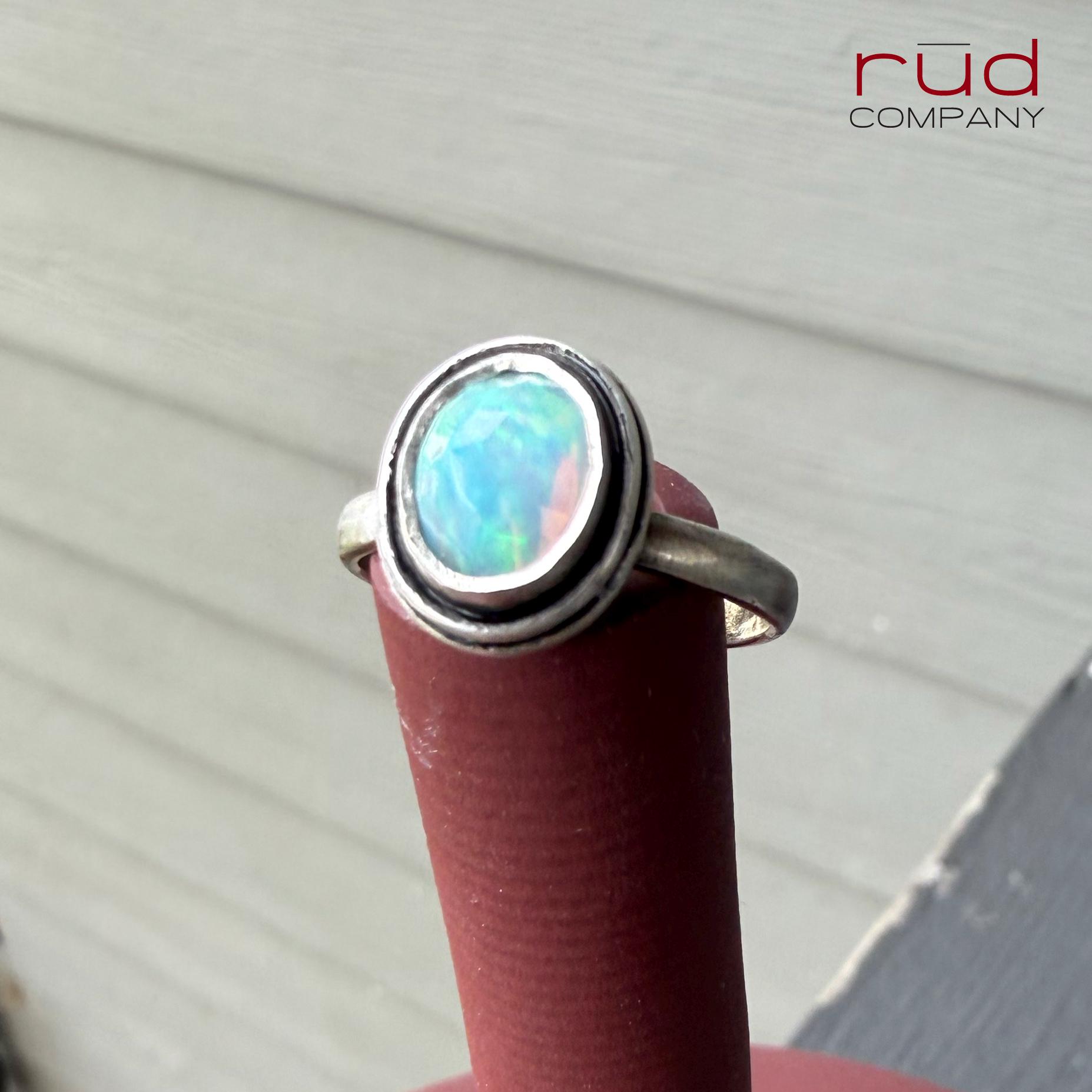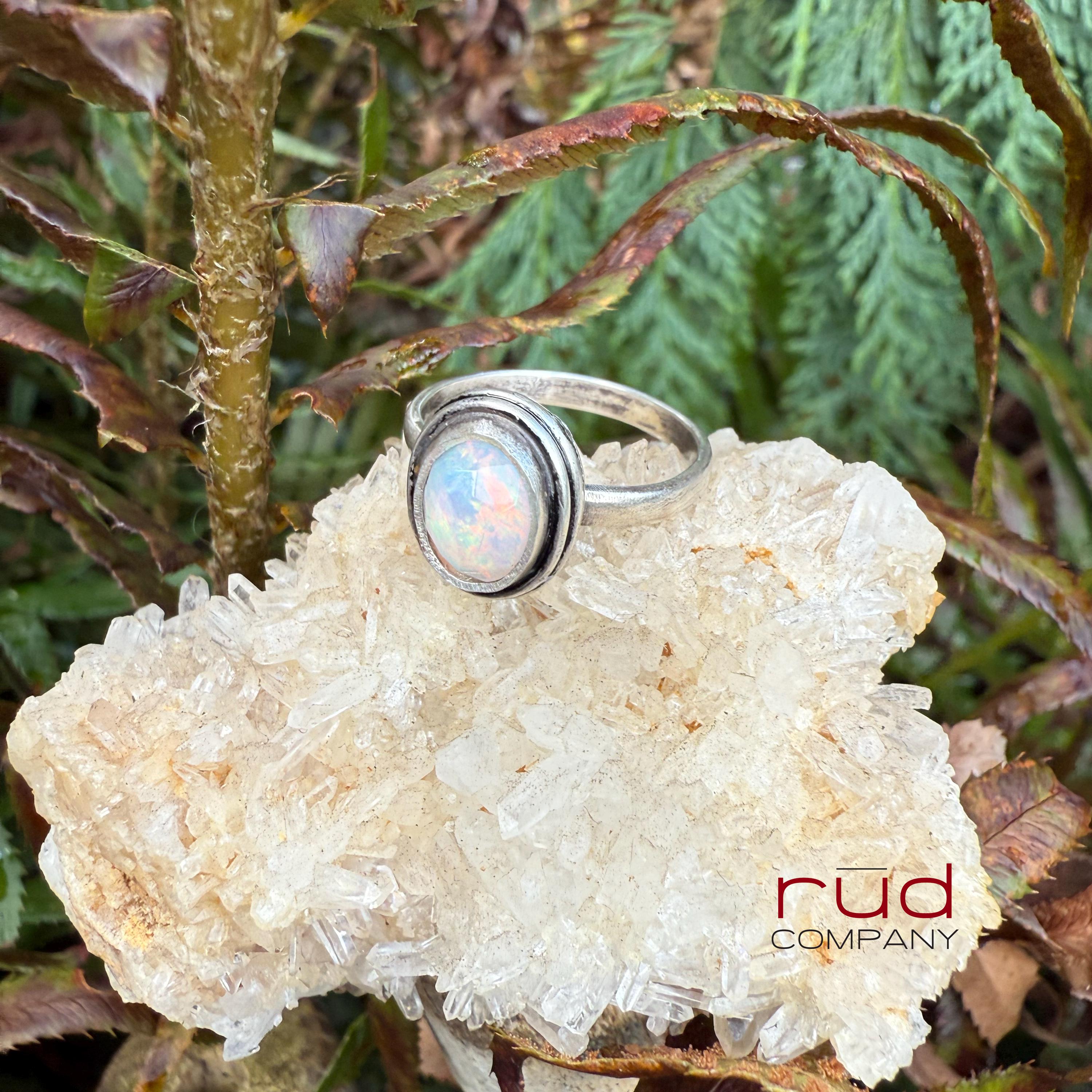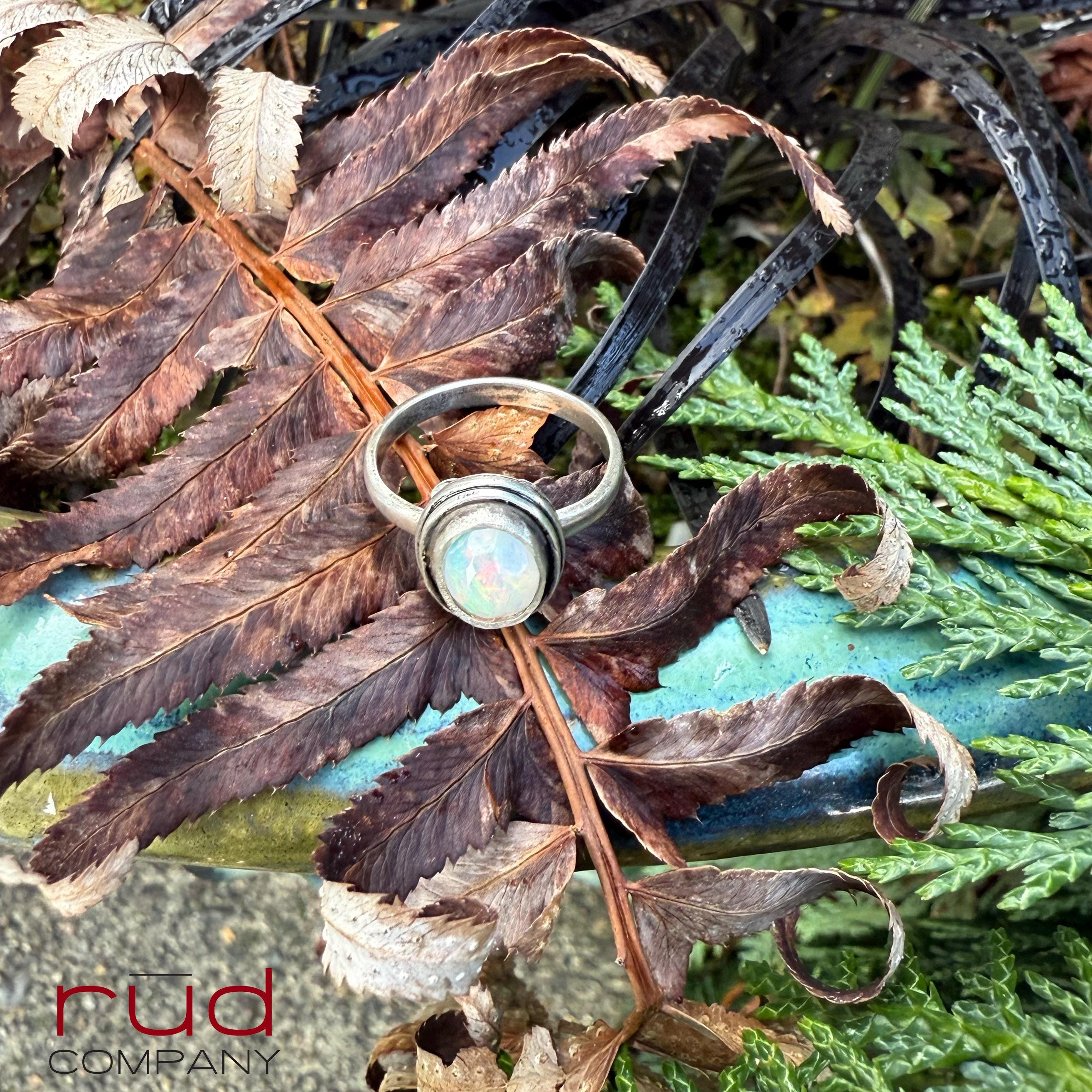 Daybreak - Stunning Ethiopian Opal Multi-Fire Ring artisan Ring set in Sterling Silver with Pinks, Blues, Greens Ring Minimalist Size 8.25