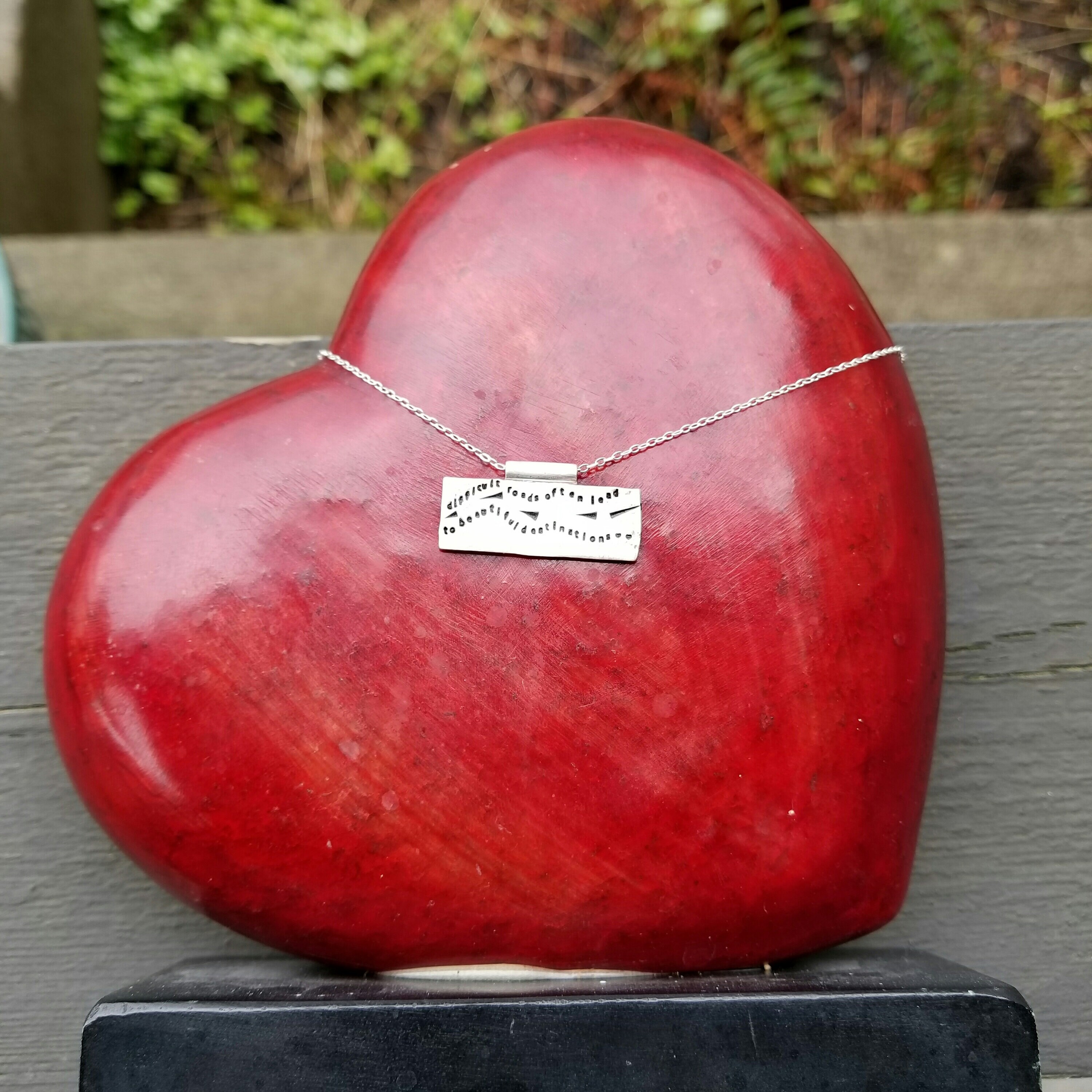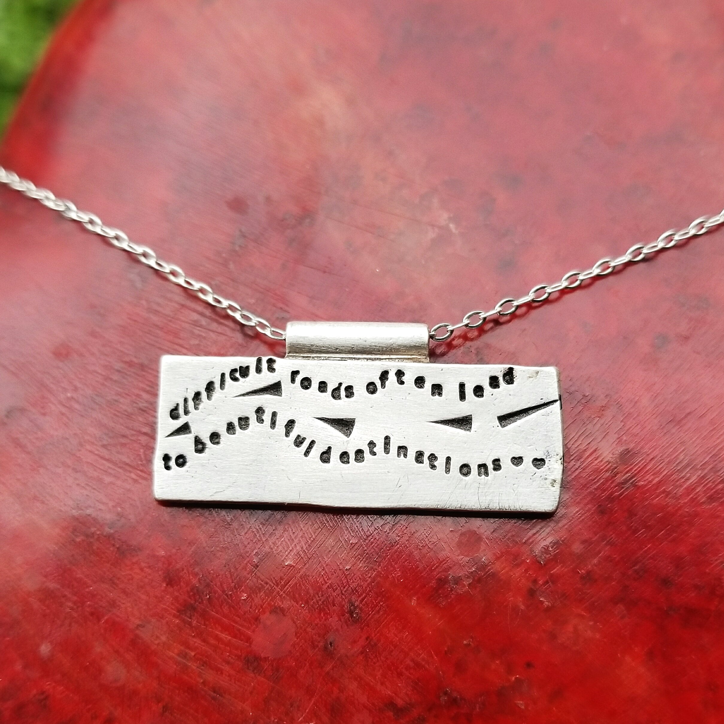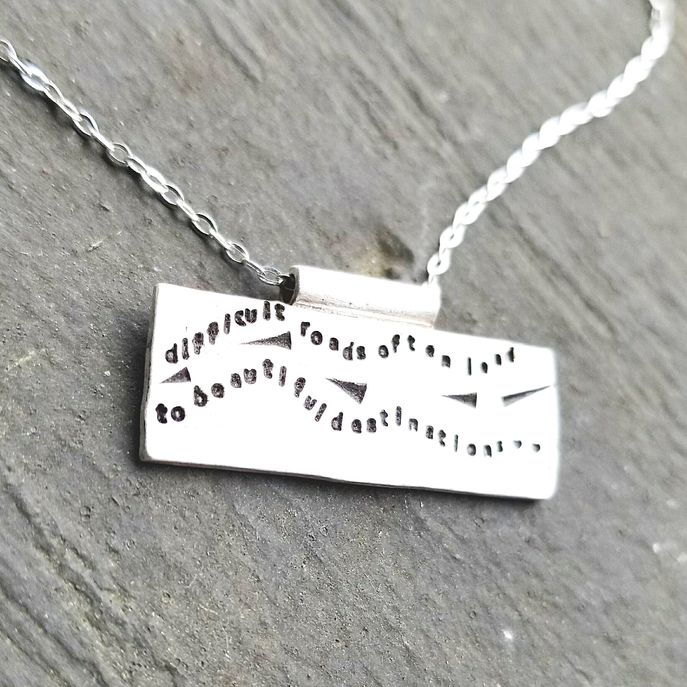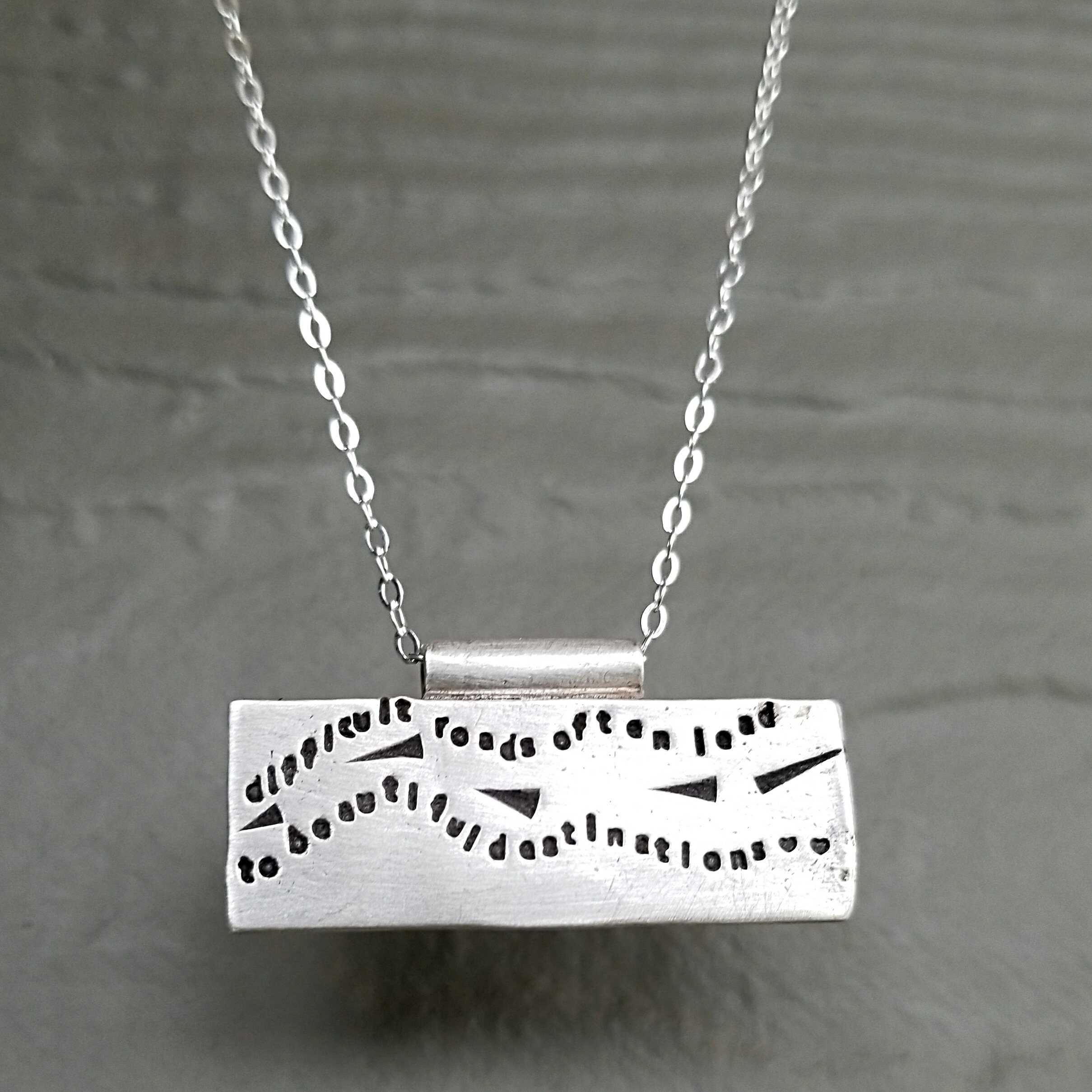 Artisan Stamped Road Highway Street Scene Pendant Necklace, Inspirational, Tiny Phrases Form a Picture, Sterling Silver, Journey, Path